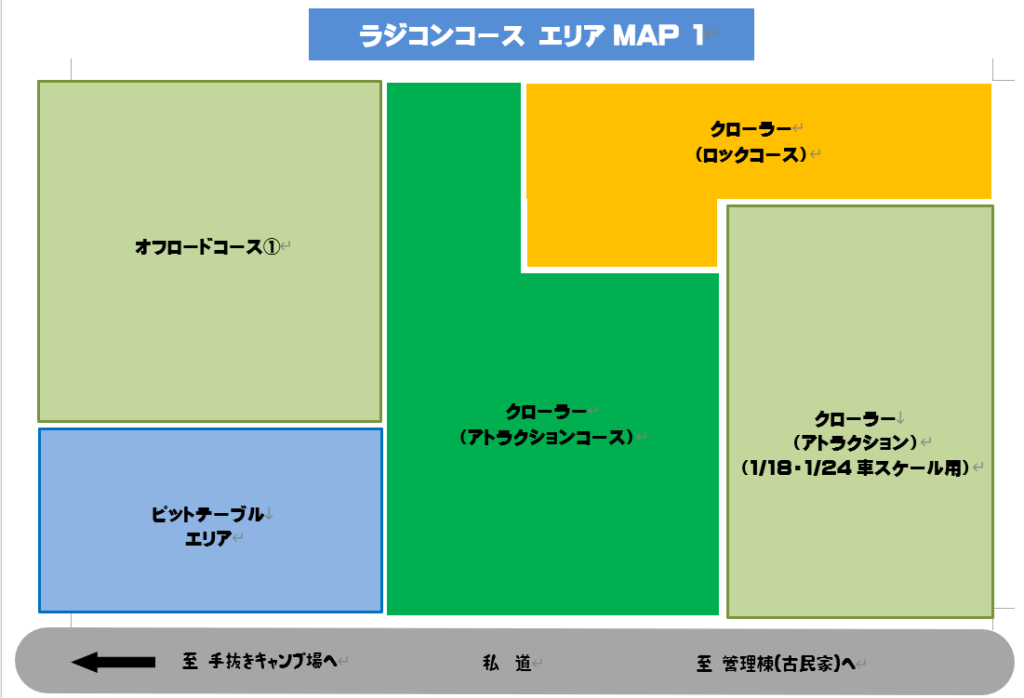 - 当コースは、基本1/10スケールのラジコンコースとなります。