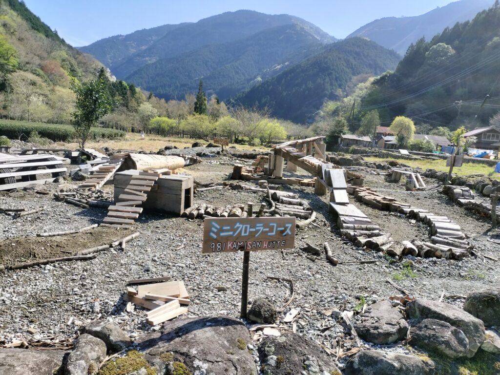 地形を利用して、ラジコンのクローラーコースとオフロードコースを施工。まあ、管理人がラジコン好きでやりたいだけなんだけど。😊